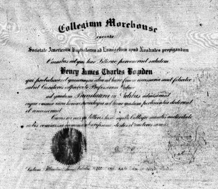 “Diploma of Henry James Charles Bowden, Morehouse, 1925,”